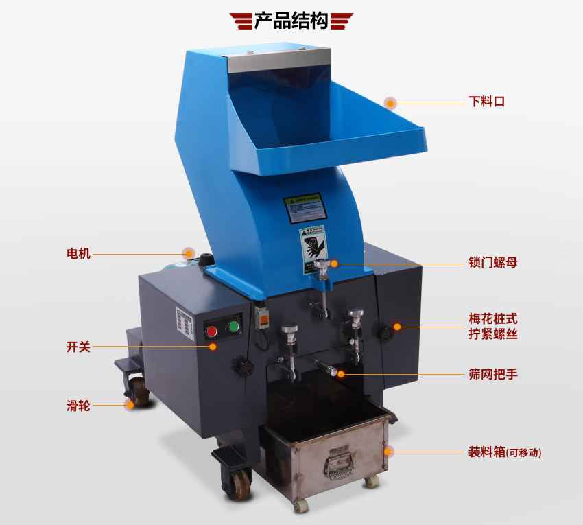 11、通用型塑料粗碎机,采用密封轴承,使轴承转动长时间保持良好,刀型设计合理,产品成粒均匀,刀座热缩处理,外形设计美观大方。