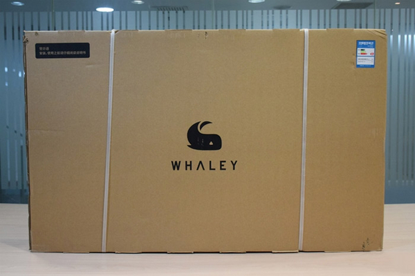 这台型号为 WTV43K1 的 43 英寸微鲸电视,官方还为其起了个代号叫「小钢炮」。或许是因为,在性能方面,其与 55 英寸微鲸电视相差无几,而这则使得其在诸多 43 英寸智能电视中有着偏高的性能。微鲸小钢炮的外包装简单结实,包装上的能效标识为3级高能耗。